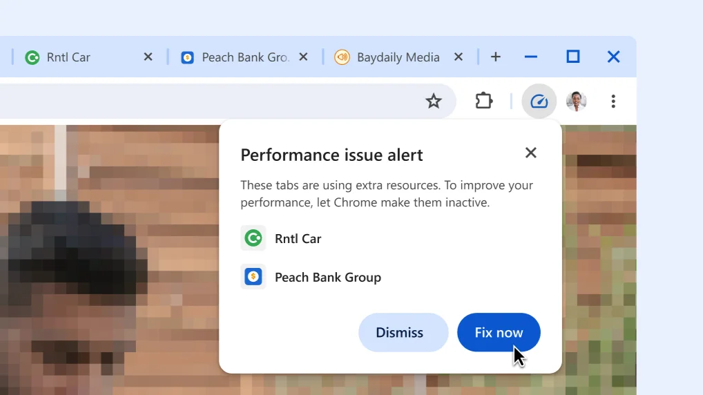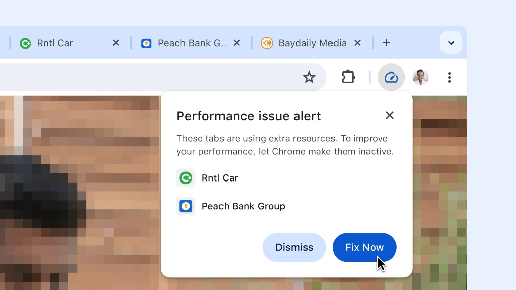 Chrome automatically suggests that tabs using extra resources become inactive, so the tab you're currently using gets a performance boost.